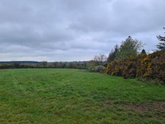 c9.7 Acres set out in 3 No Fields and currently under Grass, considerable Road frontage with the lands elevated above the main Rd